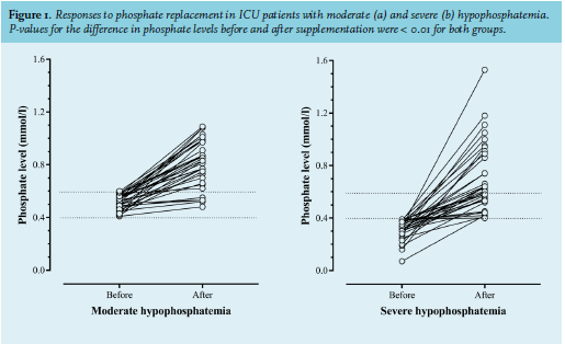 We therefore decided to extend the evaluation of this protocol in a larger group of patients with phosphate levels < 0.40 mmol/l, and to compare the results with patients who had phosphate levels between 0.40 and 0.60 mmol/l.
