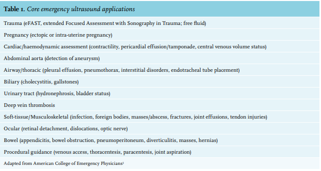 We suggest core applications for internists treating acutely ill patients in the Emergency Department (ED) or the ward. These suggestions are based on international guidelines for the development of ultrasound curricula in emergency medicine (see table 2).
